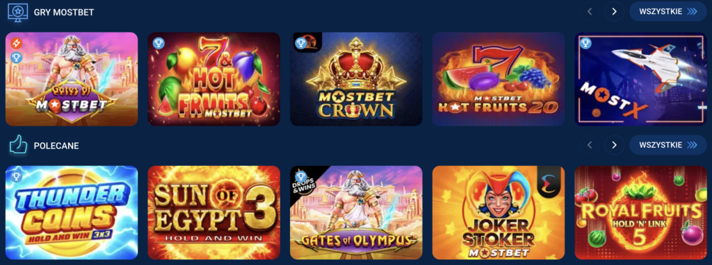 Mostbet Casino zapewnia szeroką gamę rozrywki online, w której każdy znajdzie coś dla siebie. Dzięki różnorodnym kategoriom i współpracy z renomowanymi dostawcami, możesz cieszyć się najwyższej jakości rozgrywką, niezależnie od tego, czy preferujesz automaty, gry stołowe czy transmisje na żywo.